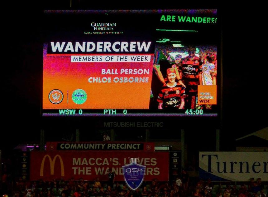 Last Saturday, one of our strongest members, Chloe Osborn, had her moment at the WSW match vs Adelaide. Chloe is the assistant coach of the U14G/1 team, has been a frequent ball person for the Wanderers and is a proud Ram.