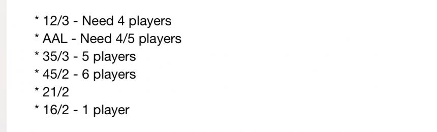 Email our registrar Dennis if you want to join the RAMS. See teams listed that need players