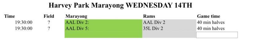 TRIAL MATCHES WEDNESDAY 14/3/18