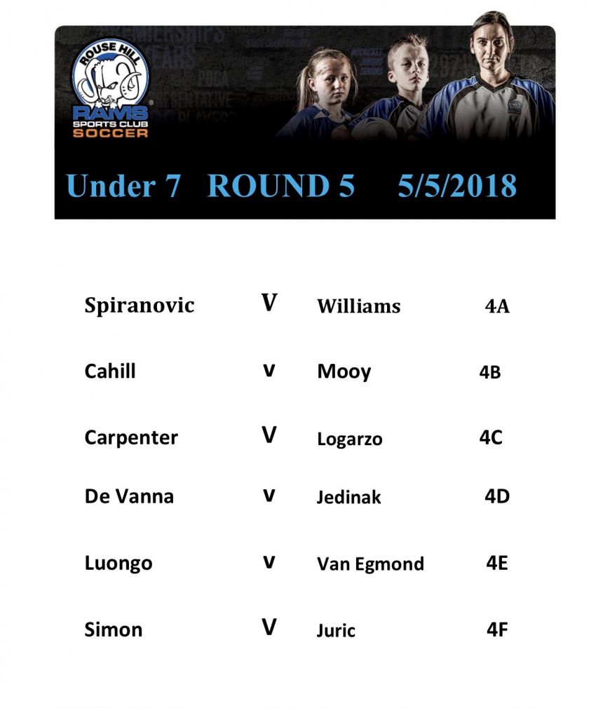 Round 5 for our Under 6 and Under 7’s as listed
