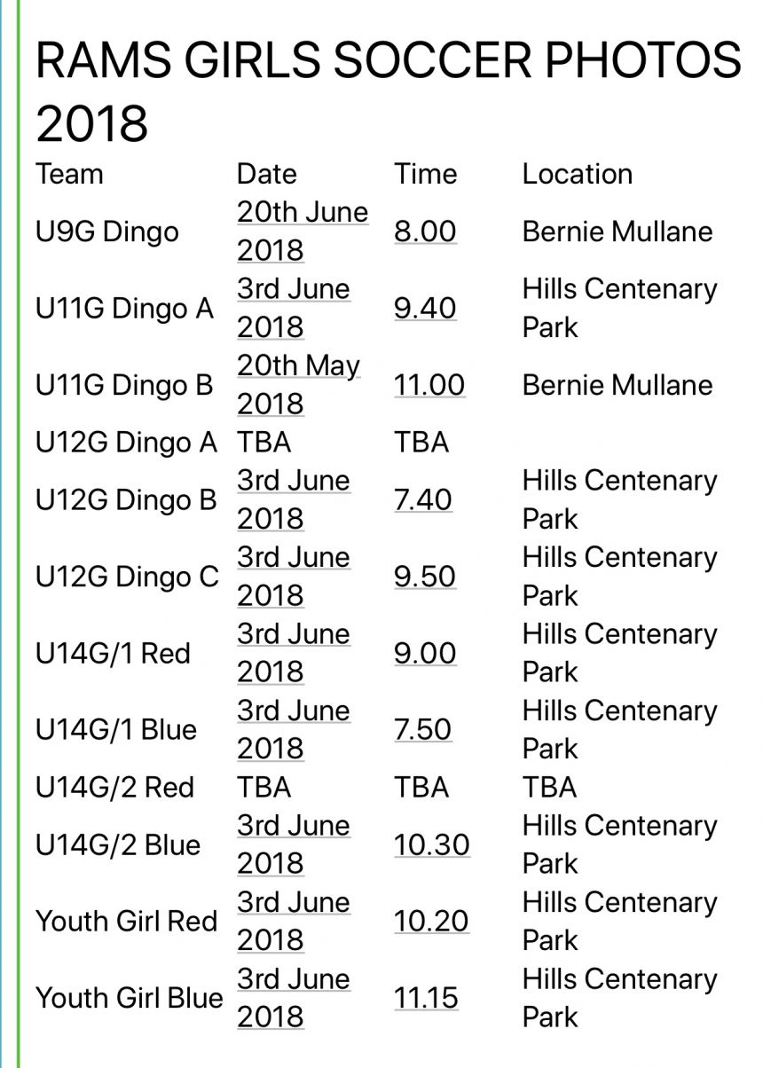 ⚽️By now Team Coaches or Managers should have picked up their teams photo envelope from the canteen. Please ensure all monies are collected and envelope is filled out before your scheduled photo time. Please arrive 15mjns before your time slots to ensure everyone is ready to be photographed with their biggest smiles⚽️