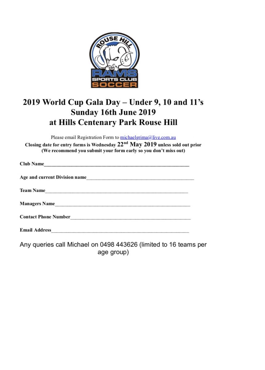 Rams famous World Cup Gala Day is open to all Under 9,10 & 11s
